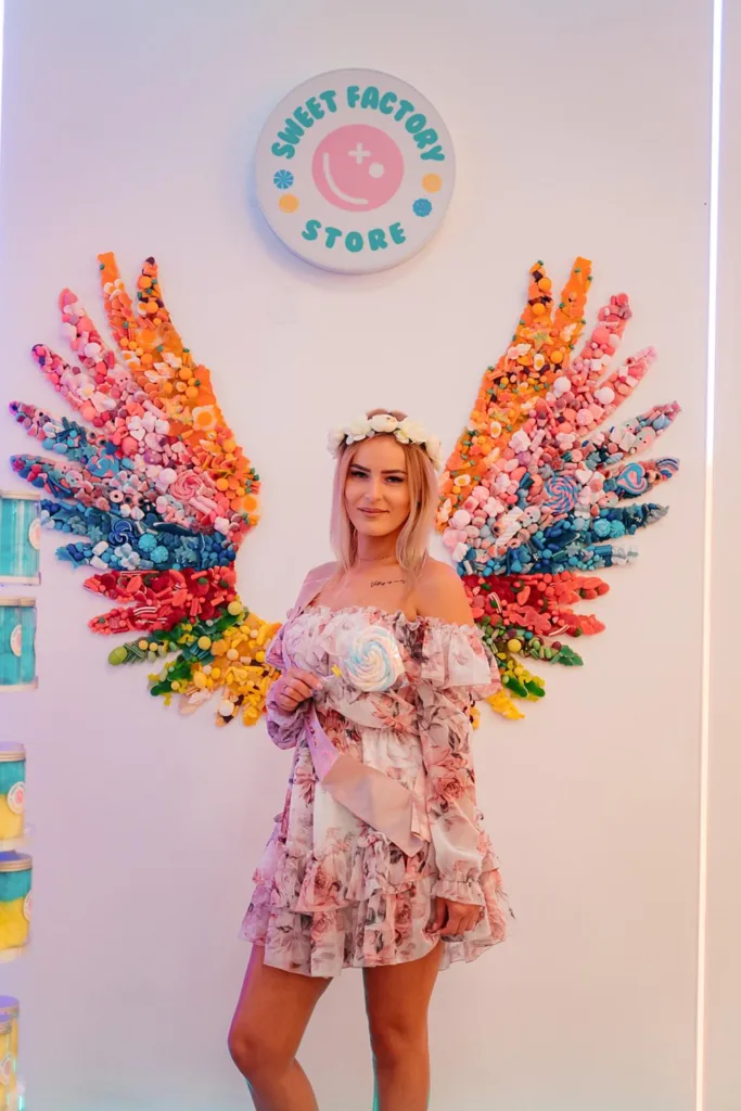 Kiedy weszłyśmy do Sweet Factory Store, wszystko zamieniło się w kolorową przygodę. Dziewczyny z entuzjazmem sięgnęły po wielkie lizaki, kolorowe cukierki i zrobiły furorę pozując między półkami. Tego miejsca po prostu nie da się nie pokochać! Zadziorne kadry, neonowe światła i czysta radość – idealne tło na zwariowaną sesję panieńską.